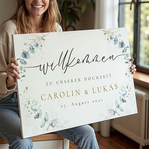Dein personalisiertes Hochzeitsschild kann direkt ausgepackt und verwendet werden. Wir empfehlen, das Schild auf eine Staffelei zu stellen.