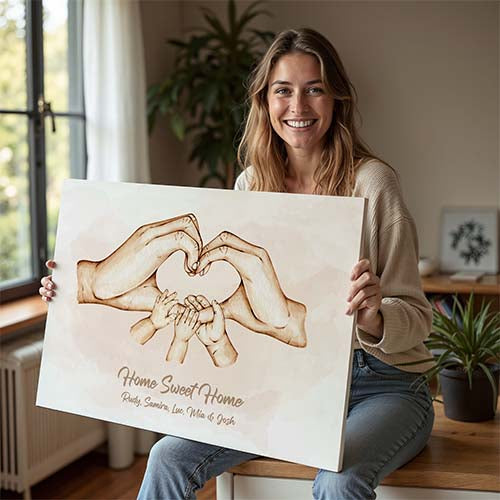 Deine personalisierte Leinwand kommt bereits mit allem, was du zum Aufhängen benötigst, bei dir an. Daher eignet es sich auch ideal zum Verschenken.